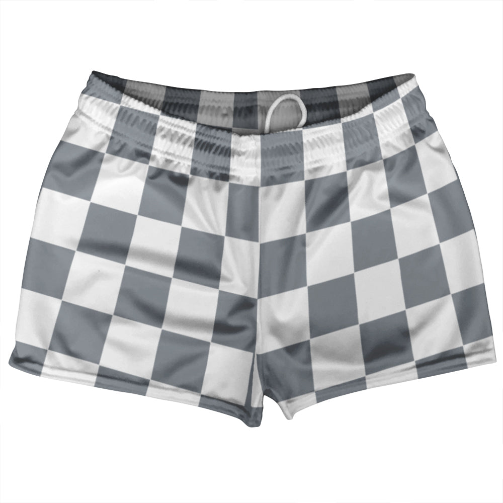 • Checkerboard 2.5 Inches Grey Dark and White Shorty Short Gym Shorts 2.5" Inseam Made In USA
