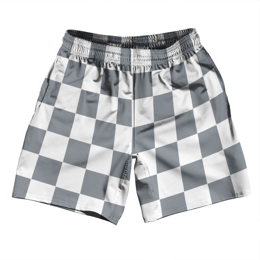 Checkerboard 2.5 Inches Grey Dark and White Soccer Shorts Made In USA