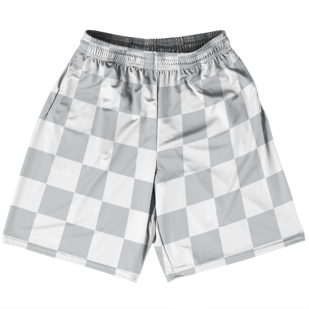 - Checkerboard 2.5 Inches Grey Medium and White Basketball Practice Shorts Made In USA