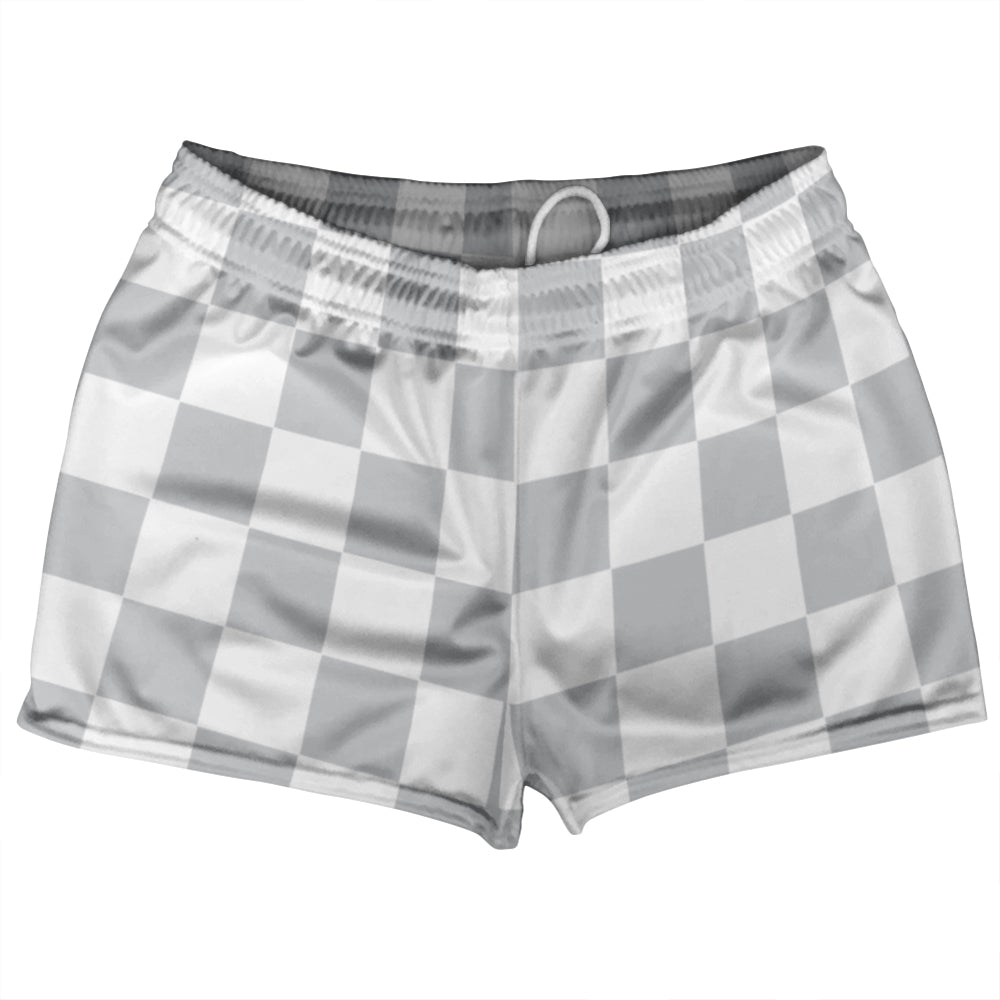 Checkerboard 2.5 Inches Grey Medium and White Shorty Short Gym Shorts 2.5" Inseam Made In USA