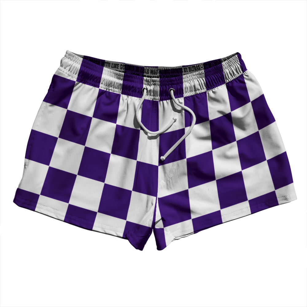 Checkerboard 2.5 Inches Purple Lakers and White 2.5" Swim Shorts Made in USA