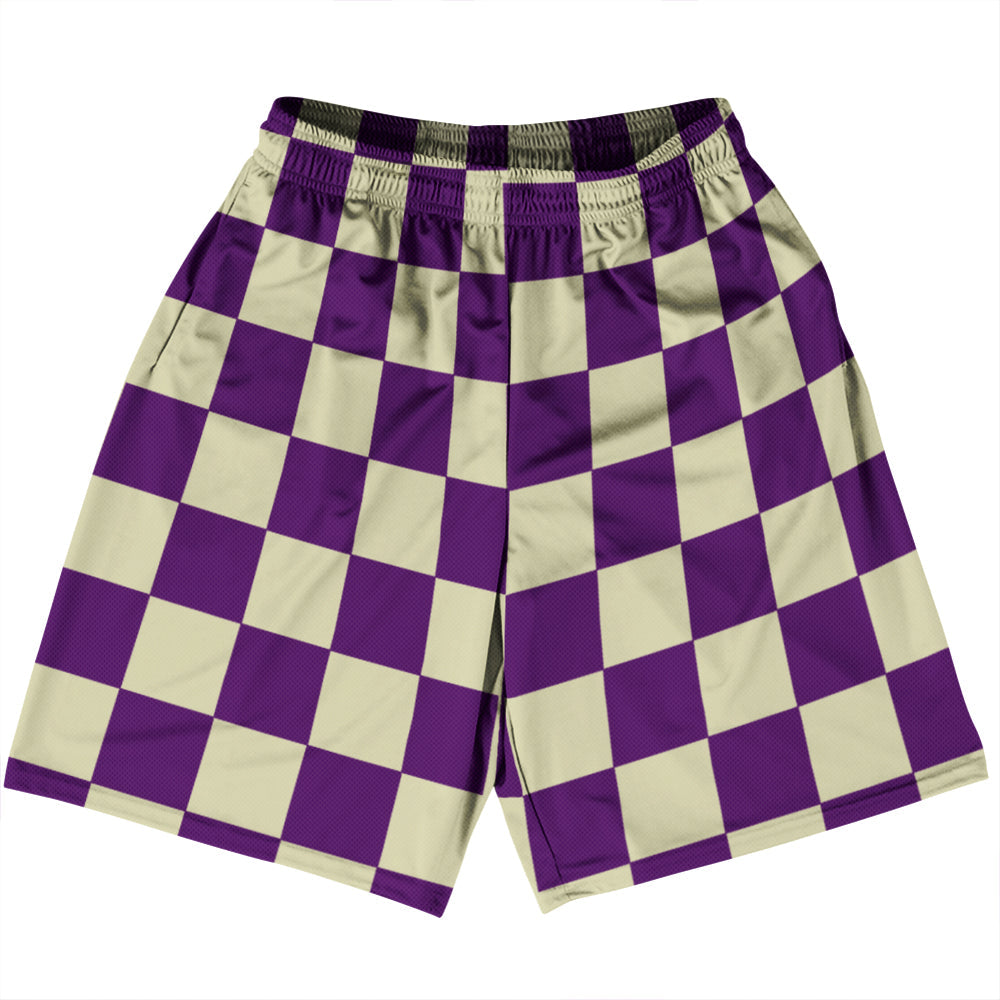 - Checkerboard 2.5 Inches Purple Medium and Vegas Gold Basketball Practice Shorts Made In USA