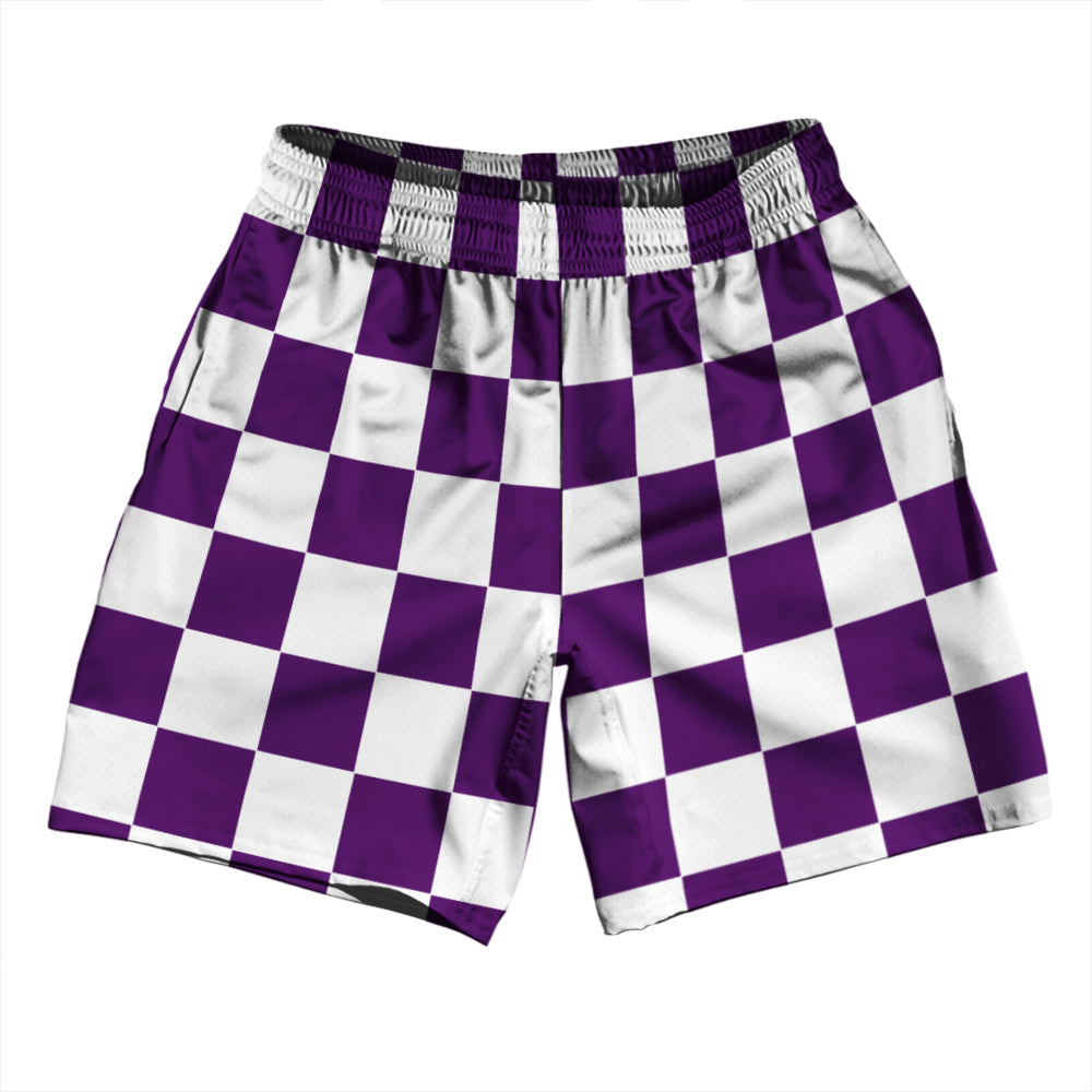 Checkerboard 2.5 Inches Purple Medium and White Athletic Running Fitness Exercise Shorts 7" Inseam Shorts Made In USA