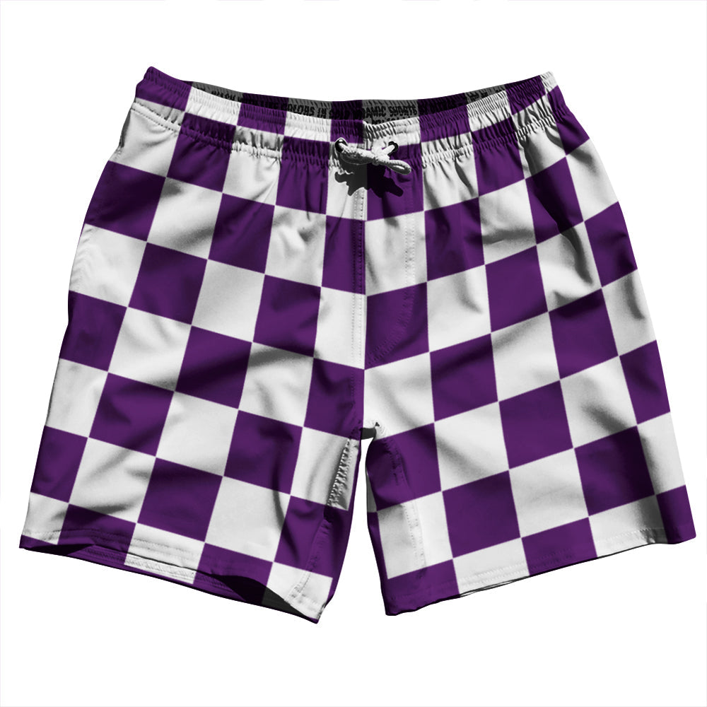 Checkerboard 2.5 Inches Purple Medium and White Swim Shorts 7" Made in USA