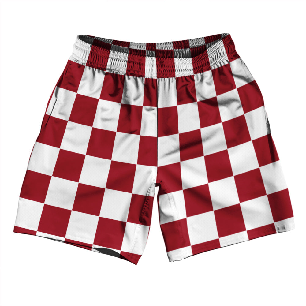 Checkerboard 2.5 Inches Red Cardinal and White Athletic Running Fitness Exercise Shorts 7" Inseam Shorts Made In USA
