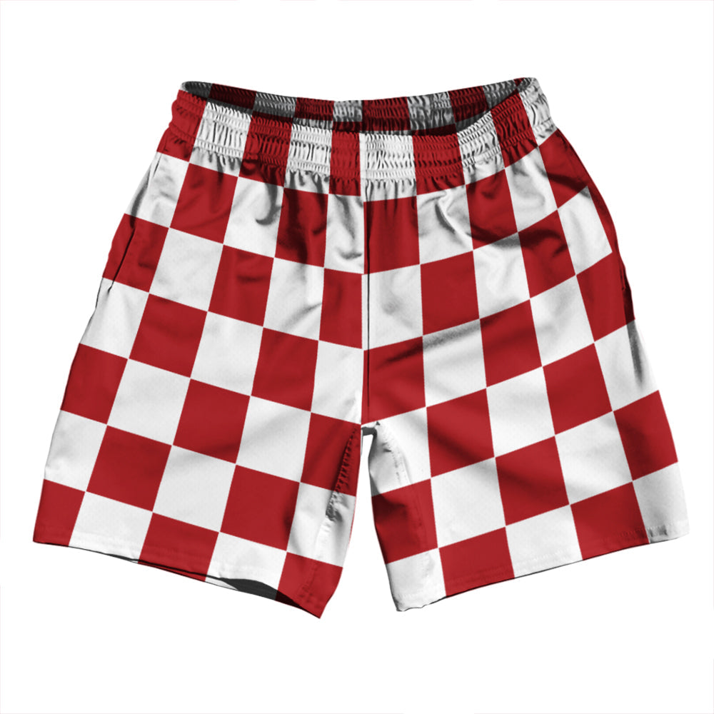 Checkerboard 2.5 Inches Red Dark and White Soccer Shorts Made In USA