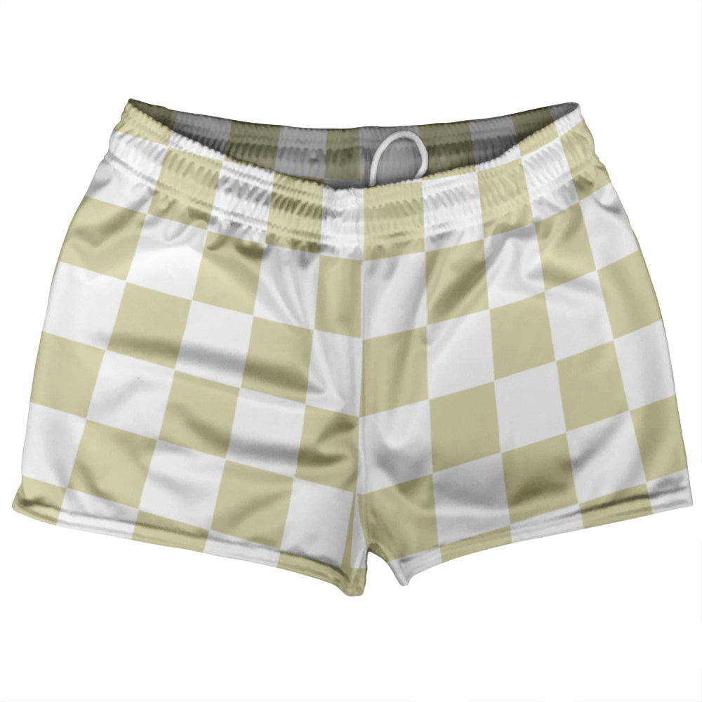 - Checkerboard 2.5 Inches Vegas Gold and White Shorty Short Gym Shorts 2.5" Inseam Made In USA