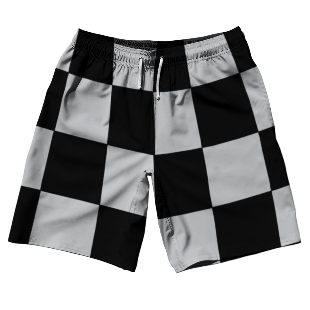 Checkerboard 5 Inches Black and Grey Medium 10" Swim Shorts Made in USA