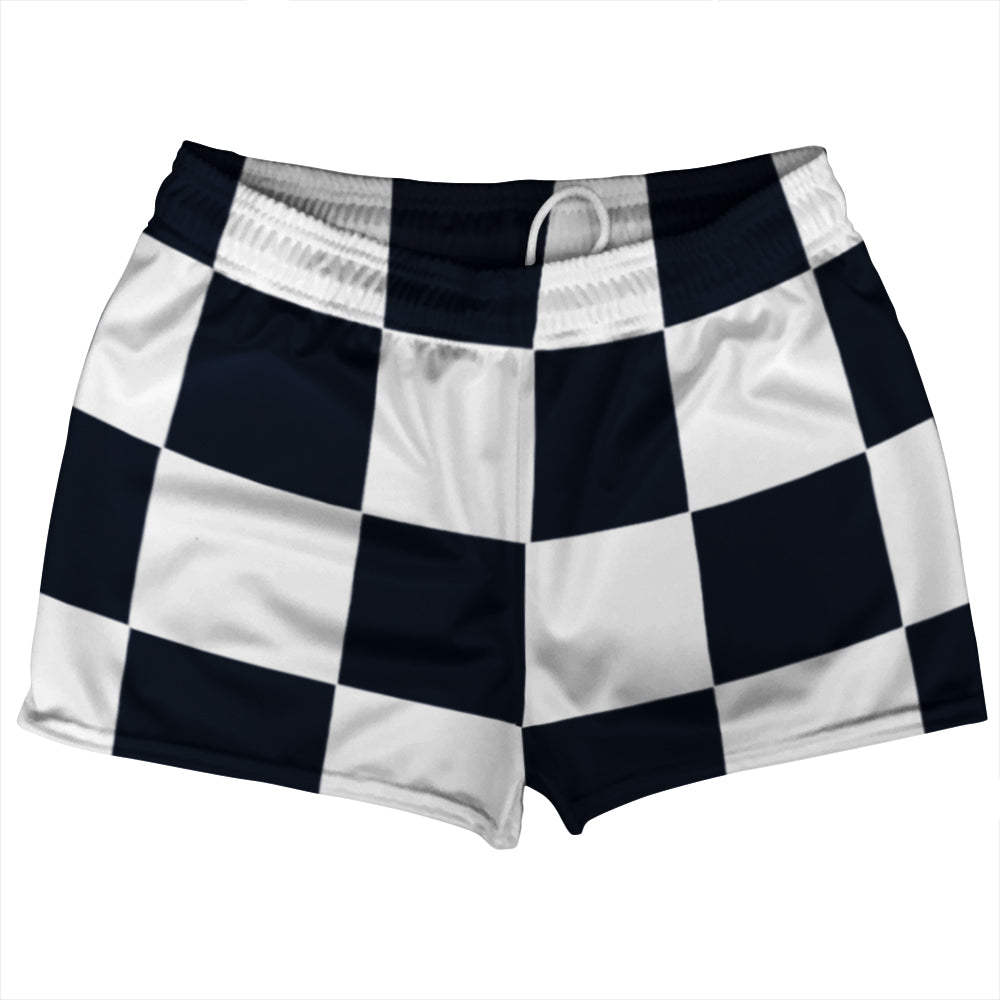 Checkerboard 5 Inches Blue Navy Almost Black and White Shorty Short Gym Shorts 2.5" Inseam Made In USA