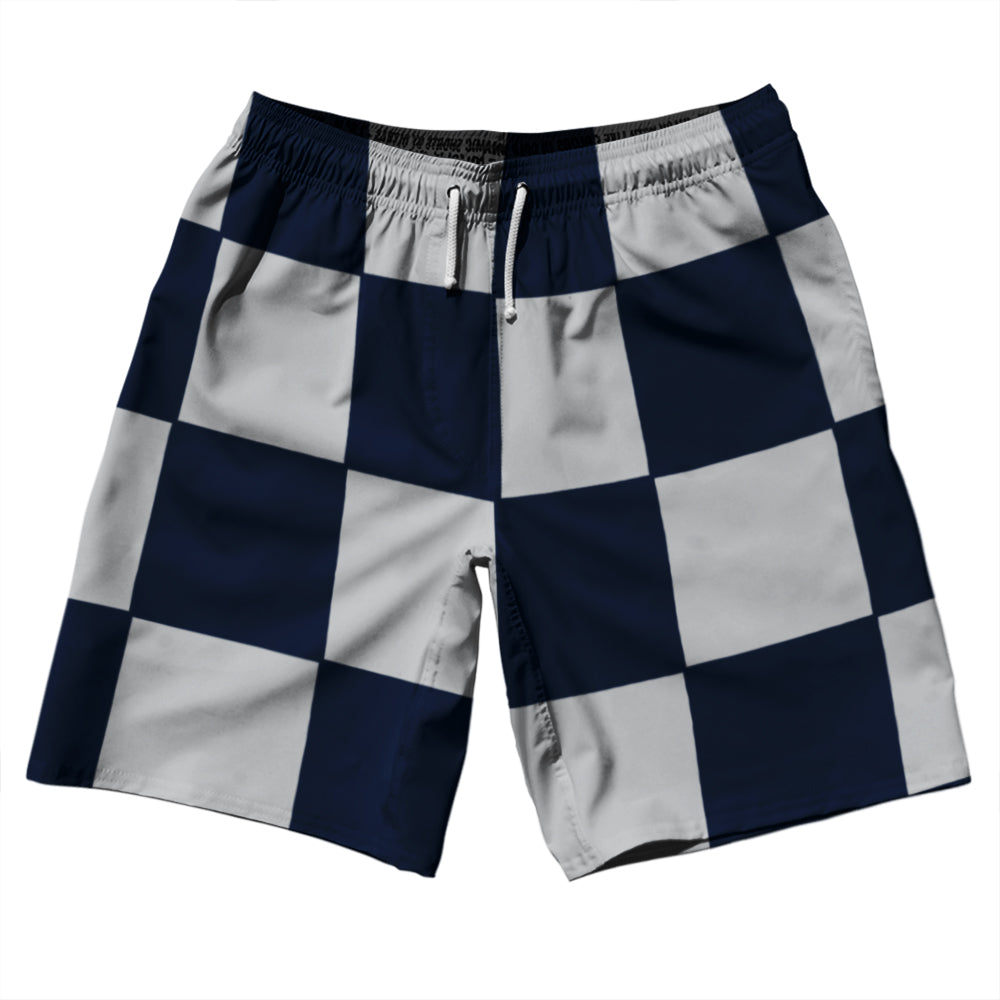 Checkerboard 5 Inches Blue Navy And Grey Medium 10" Swim Shorts Made in USA