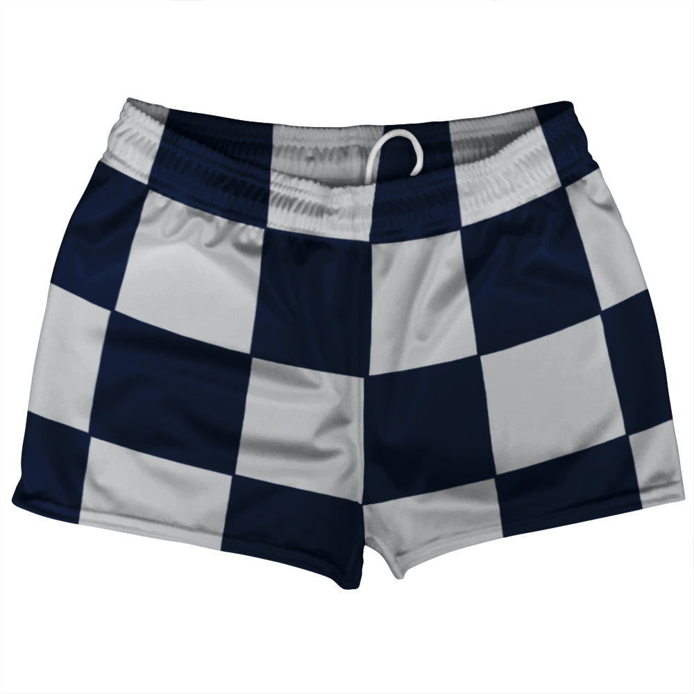Checkerboard 5 Inches Blue Navy And Grey Medium Shorty Short Gym Shorts 2.5" Inseam Made In USA