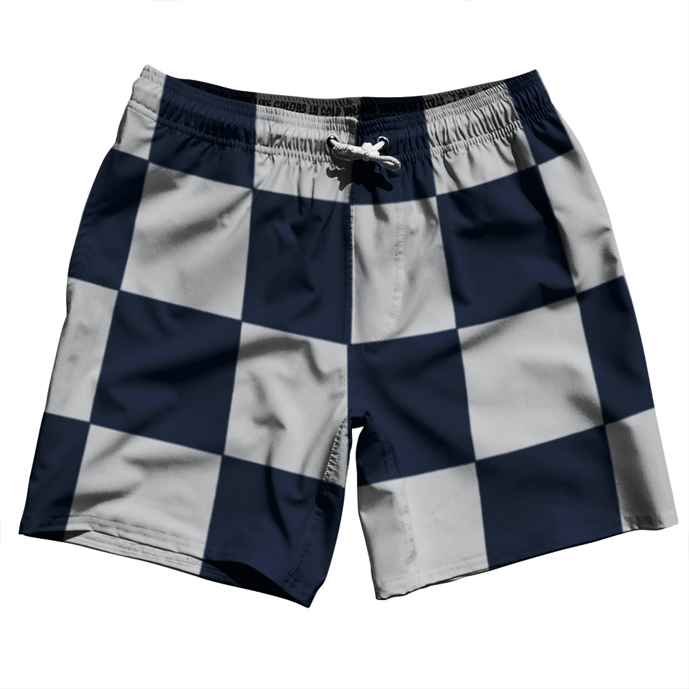 Checkerboard 5 Inches Blue Navy And Grey Medium Swim Shorts 7" Made in USA