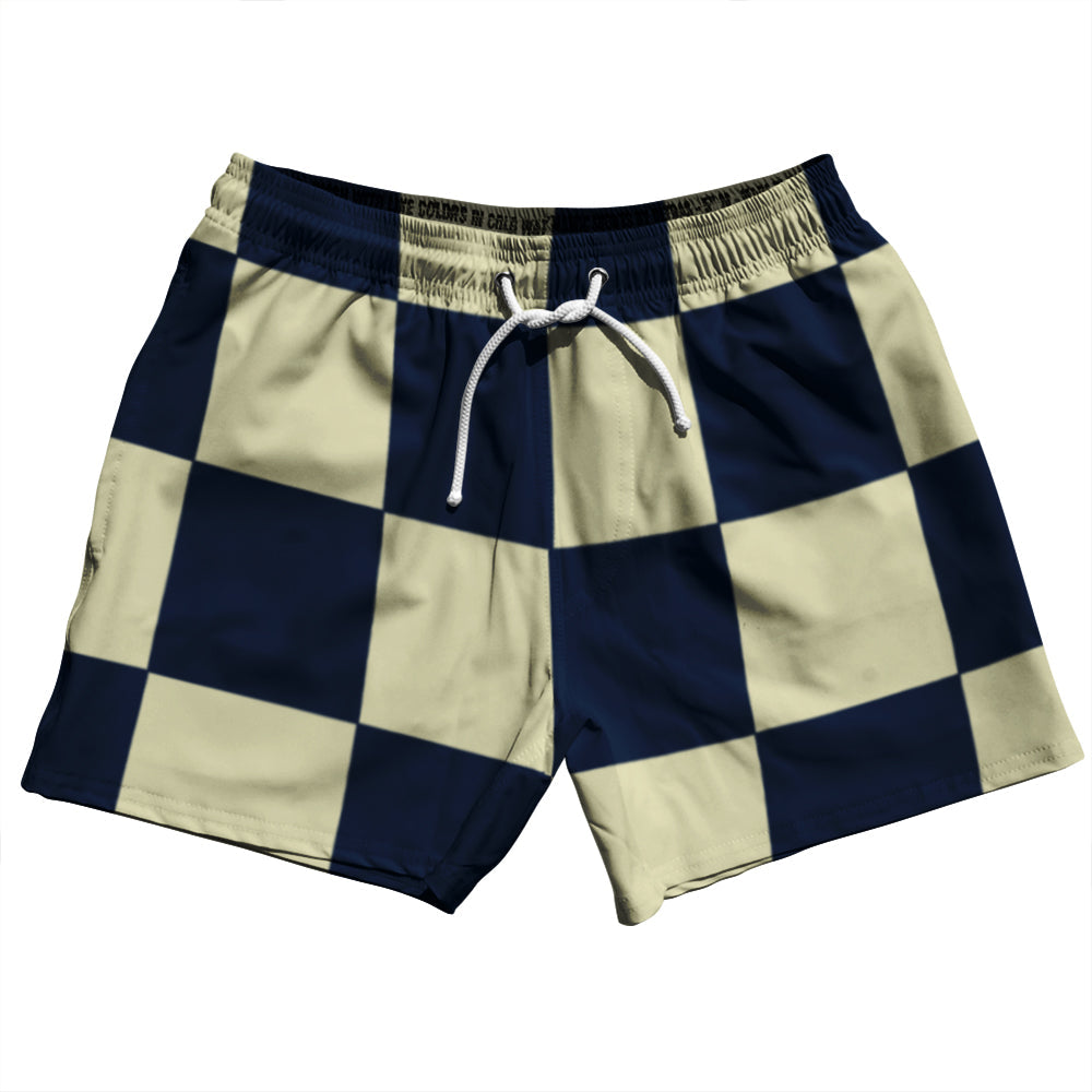 Checkerboard 5 Inches Blue Navy and Vegas Gold 5" Swim Shorts Made in USA