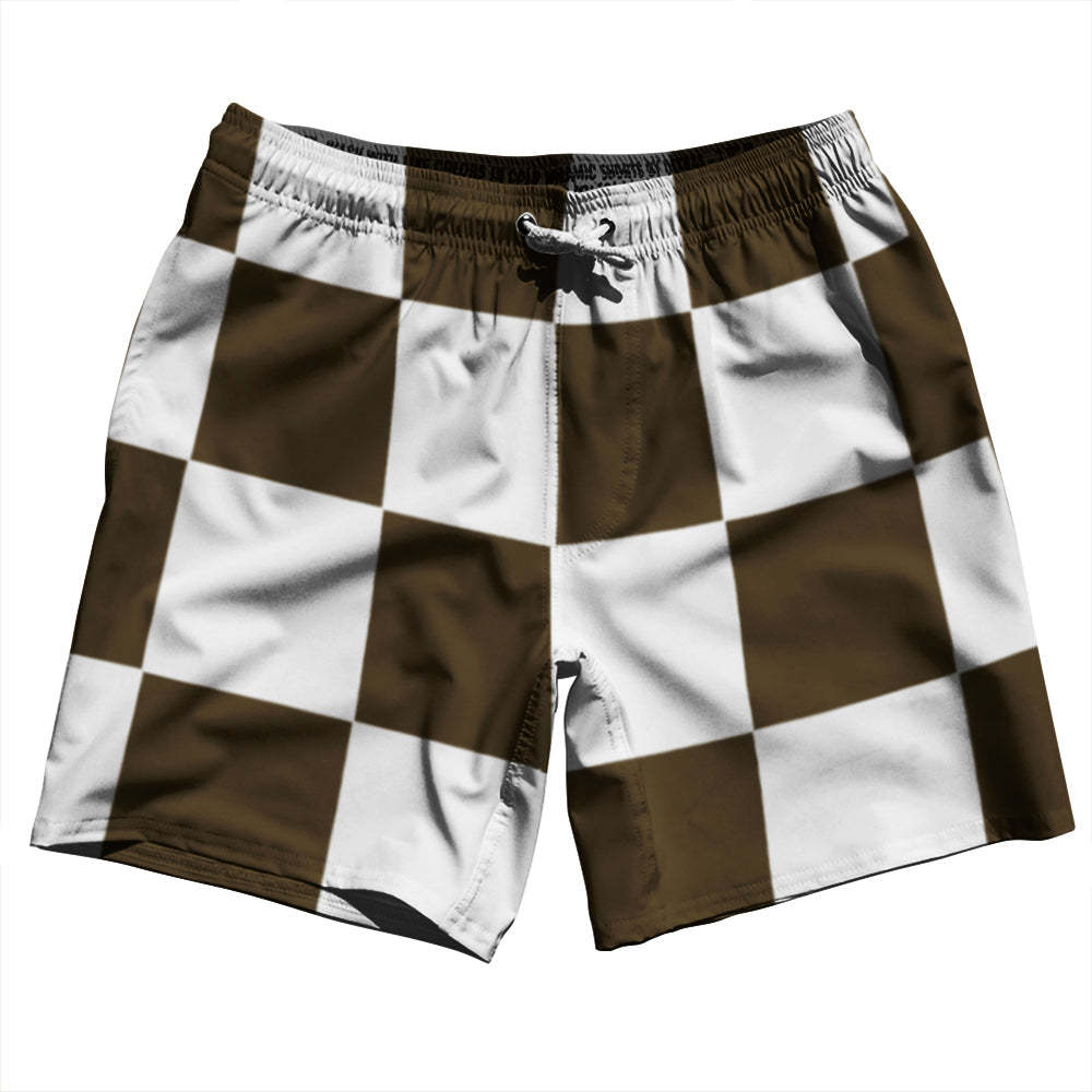 • Checkerboard 5 Inches Brown Dark and White Swim Shorts 7" Made in USA