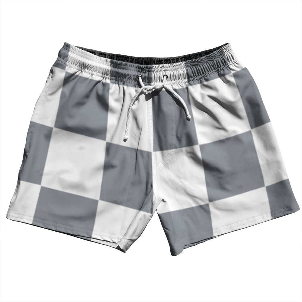 - Checkerboard 5 Inches Grey Dark and White 5" Swim Shorts Made in USA