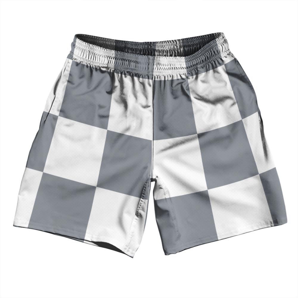 Checkerboard 5 Inches Grey Dark and White Athletic Running Fitness Exercise Shorts 7" Inseam Shorts Made In USA