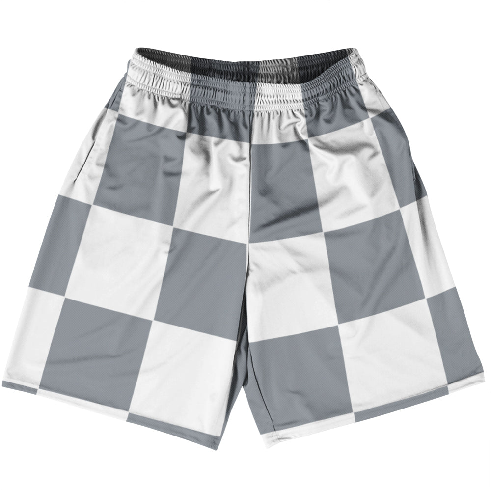 - Checkerboard 5 Inches Grey Dark and White Basketball Practice Shorts Made In USA