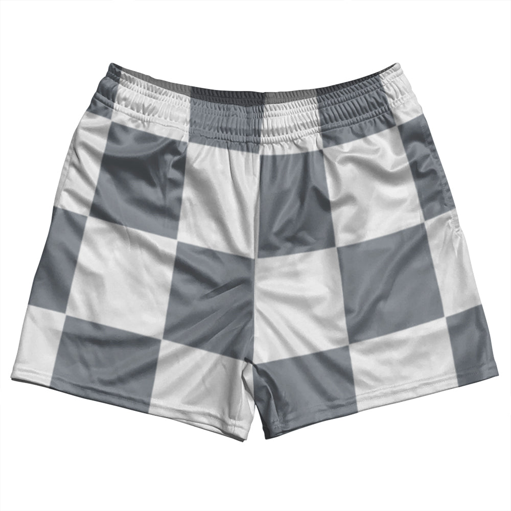 - Checkerboard 5 Inches Grey Dark and White Rugby Shorts Made In USA