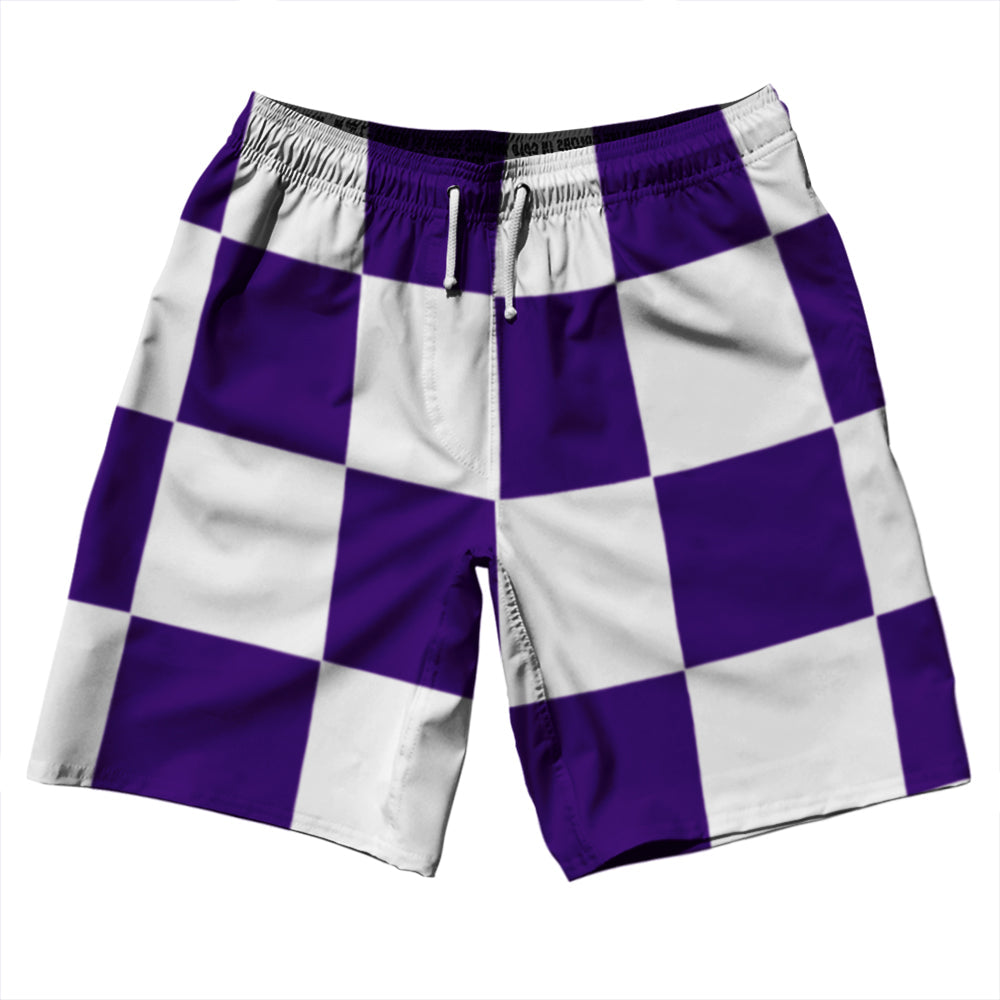 Checkerboard 5 Inches Purple Lakers and White 10" Swim Shorts Made in USA