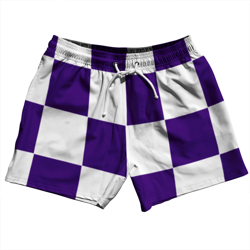 Checkerboard 5 Inches Purple Lakers and White 5" Swim Shorts Made in USA