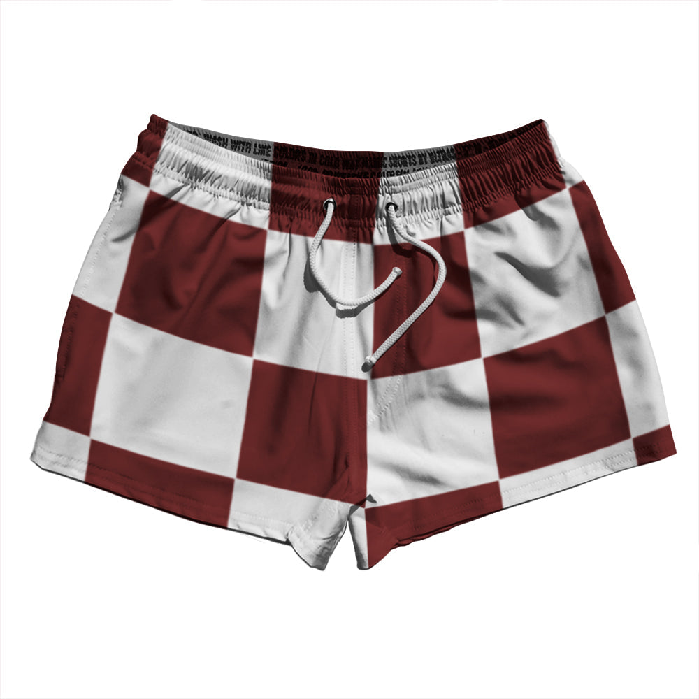 Checkerboard 5 Inches Red Maroon and White 2.5" Swim Shorts Made in USA