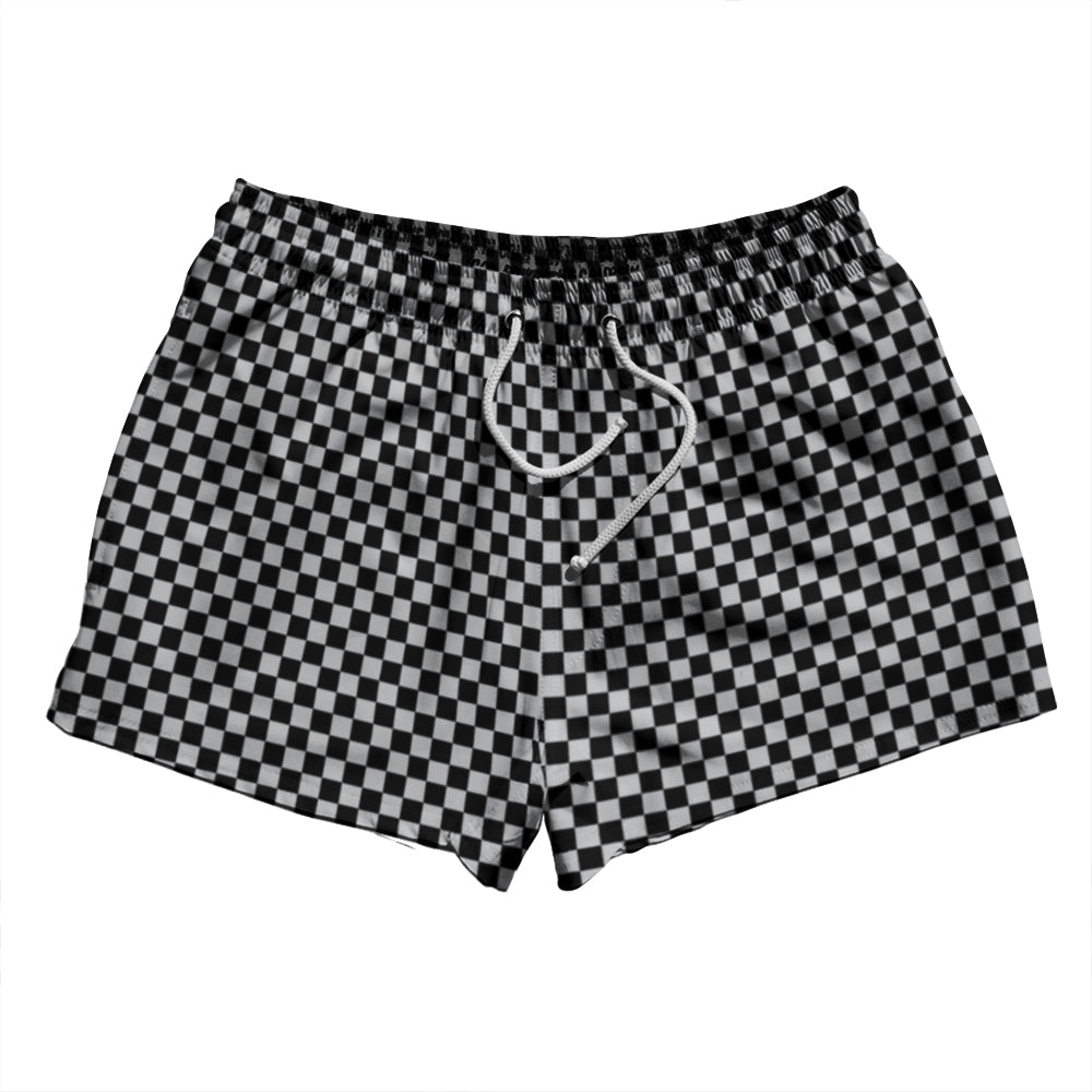 Checkerboard Half Inch Black and Grey Medium 2.5" Swim Shorts Made in USA