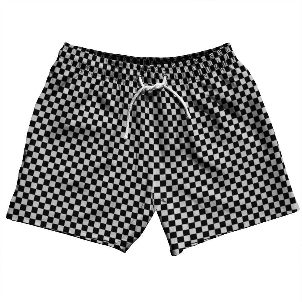 Checkerboard Half Inch Black and Grey Medium 5" Swim Shorts Made in USA