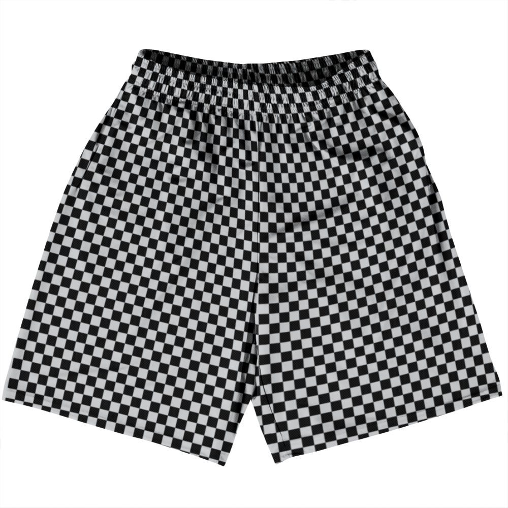 • Checkerboard Half Inch Black and Grey Medium Basketball Practice Shorts Made In USA