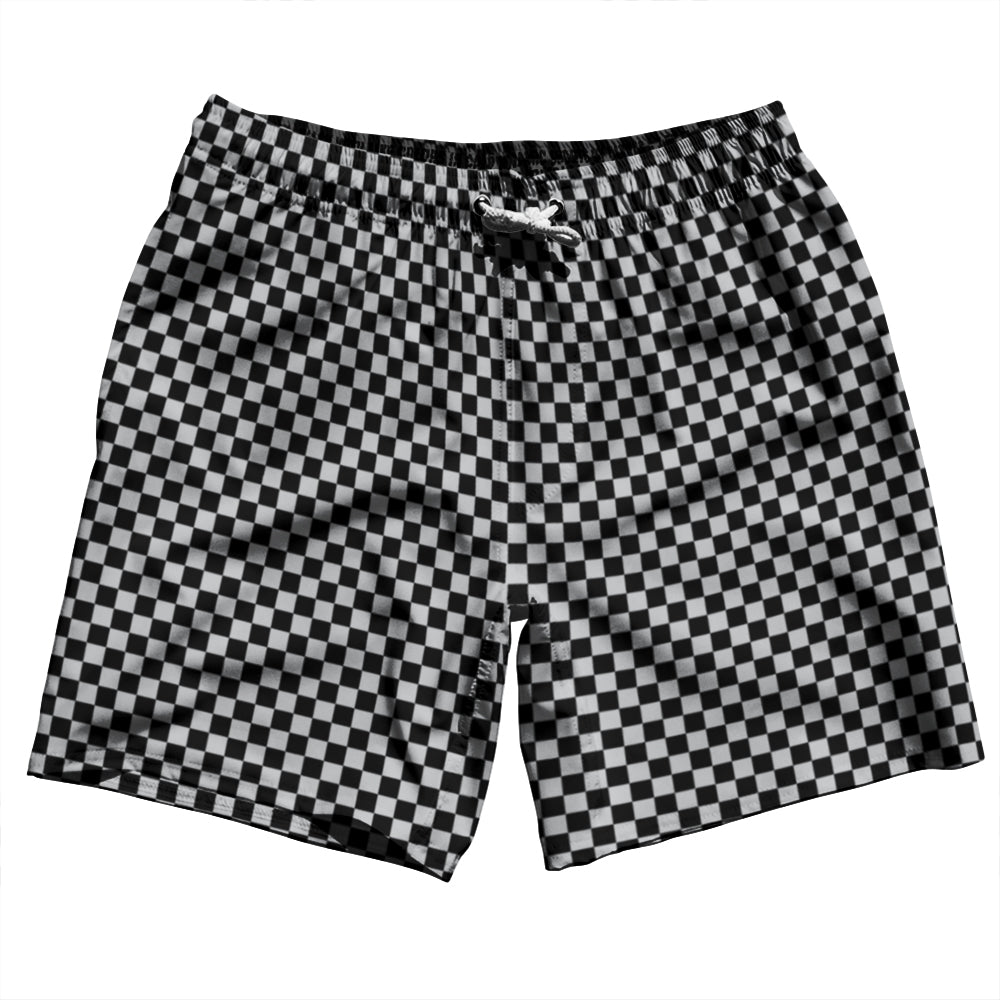 Checkerboard Half Inch Black and Grey Medium Swim Shorts 7" Made in USA