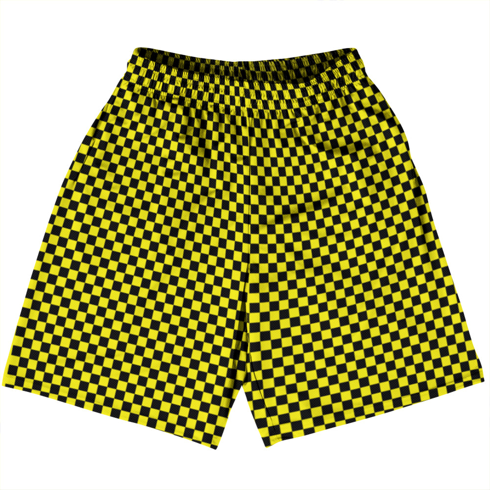 - Checkerboard Half Inch Black and Yellow Basketball Practice Shorts Made In USA