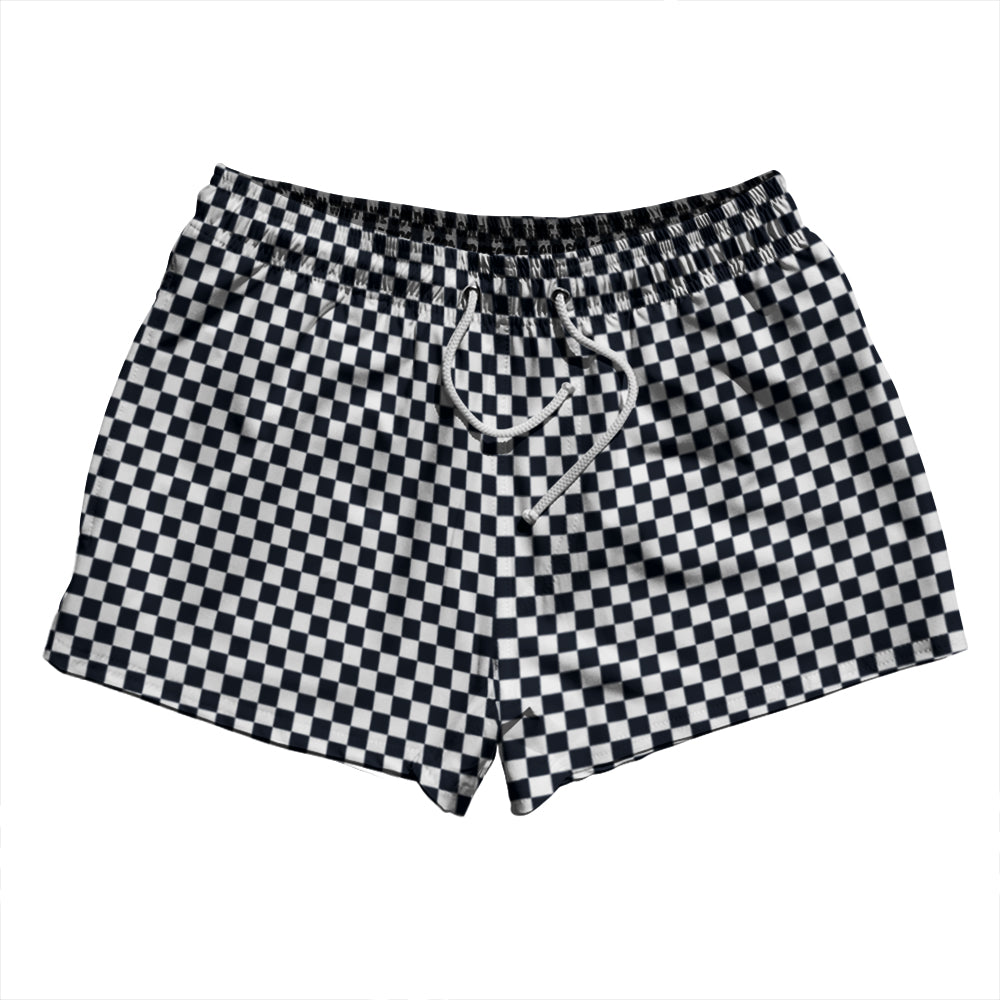 Checkerboard Half Inch Blue Navy Almost Black and White 2.5" Swim Shorts Made in USA