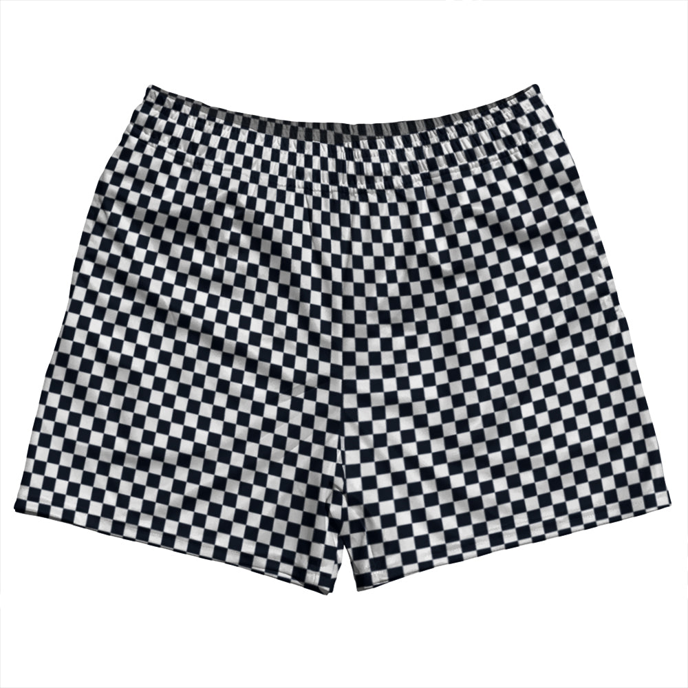 - Checkerboard Half Inch Blue Navy Almost Black and White Rugby Shorts Made In USA