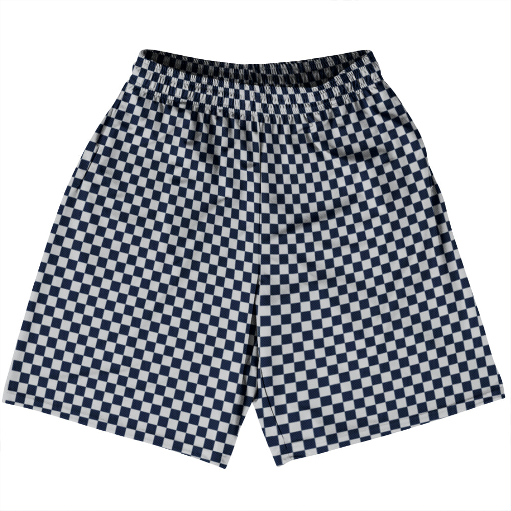 - Checkerboard Half Inch Blue Navy And Grey Medium Basketball Practice Shorts Made In USA