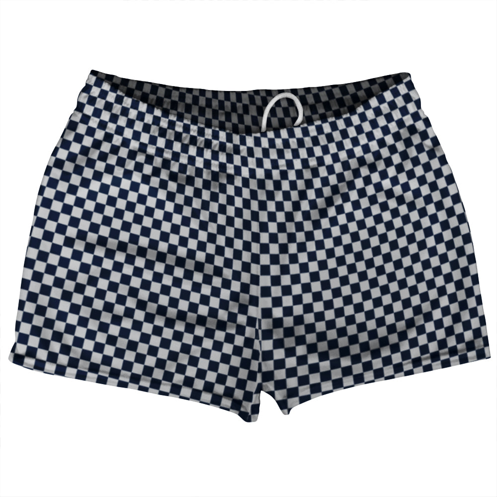 Checkerboard Half Inch Blue Navy And Grey Medium Shorty Short Gym Shorts 2.5" Inseam Made In USA
