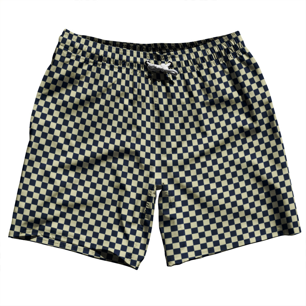 - Checkerboard Half Inch Blue Navy and Vegas Gold Swim Shorts 7" Made in USA