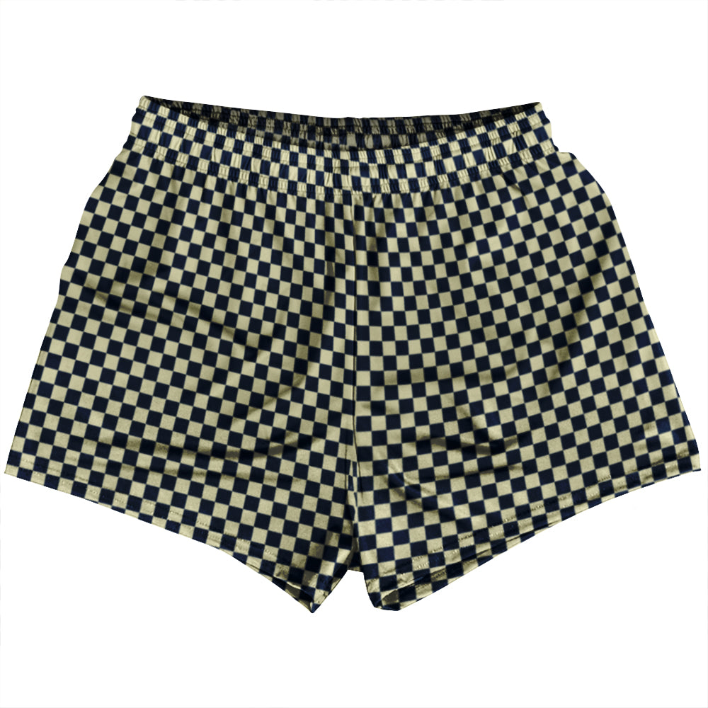 - Checkerboard Half Inch Blue Navy and Vegas Gold Womens & Girls Sport Shorts End Made In USA