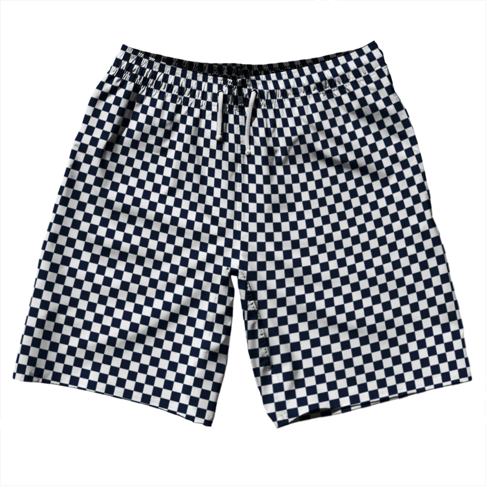 - Checkerboard Half Inch Blue Navy and White 10" Swim Shorts Made in USA