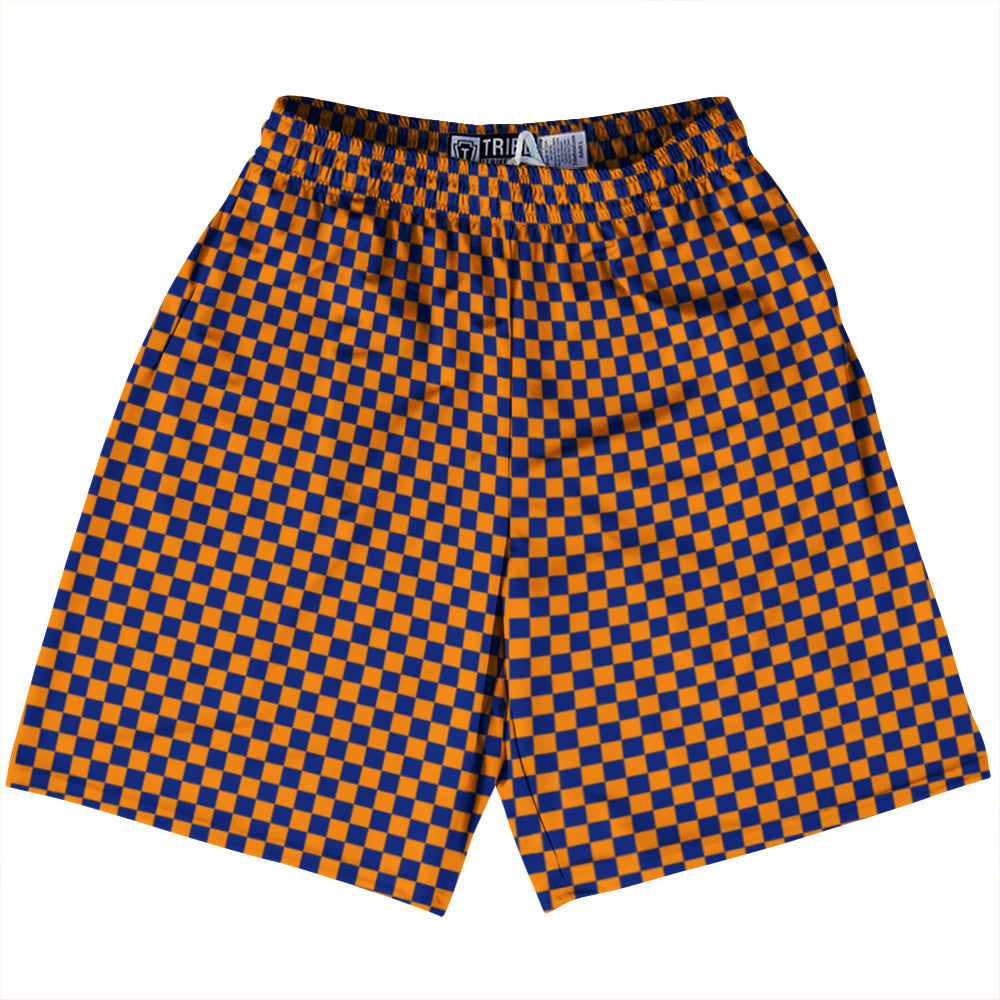- Checkerboard Half Inch Blue Royal and Tennessee Orange Lacrosse Shorts Made In USA