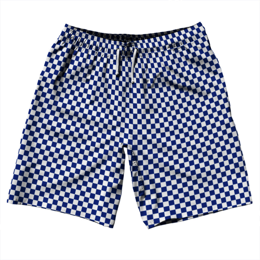 - Checkerboard Half Inch Blue Royal and White 10" Swim Shorts Made in USA