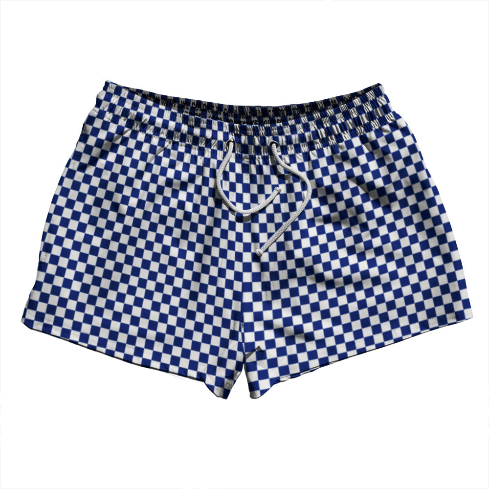 Checkerboard Half Inch Blue Royal and White 2.5" Swim Shorts Made in USA