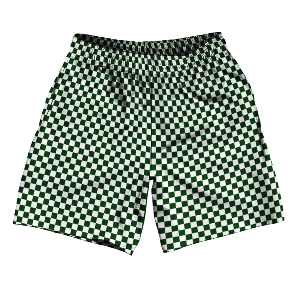 Checkerboard Half Inch Green Forest and White Athletic Running Fitness Exercise Shorts 7" Inseam Shorts Made In USA