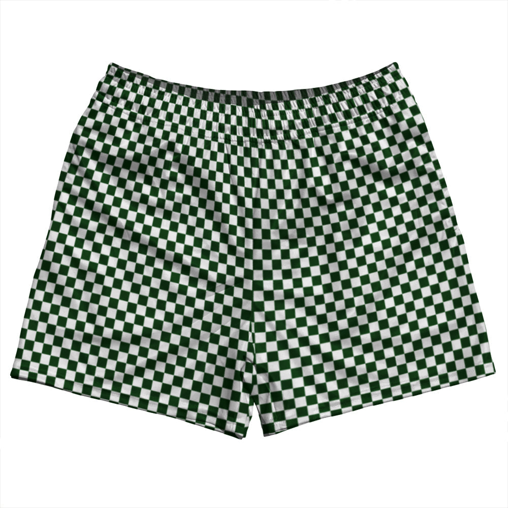 - Checkerboard Half Inch Green Forest and White Rugby Shorts Made In USA