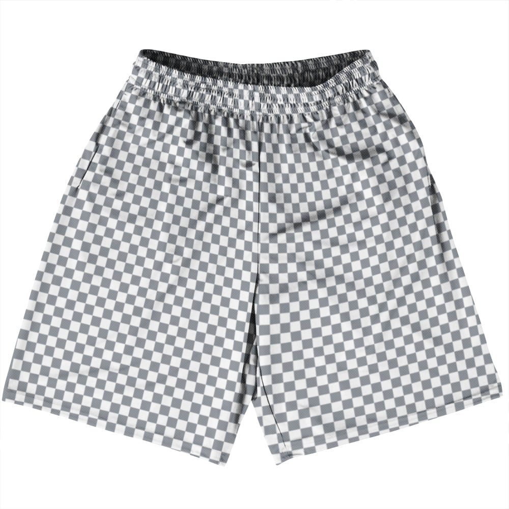 - Checkerboard Half Inch Grey Dark and White Basketball Practice Shorts Made In USA