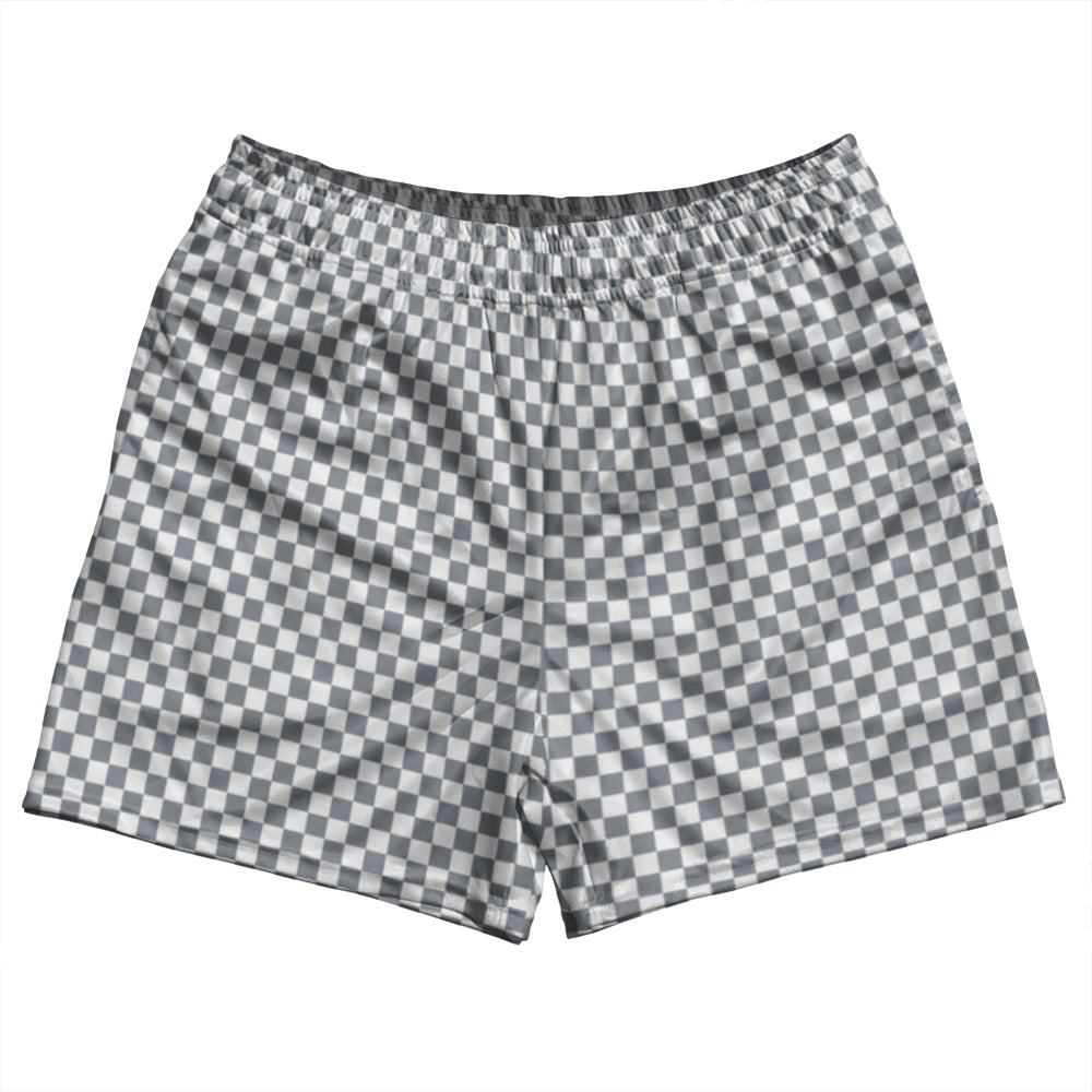 - Checkerboard Half Inch Grey Dark and White Rugby Shorts Made In USA