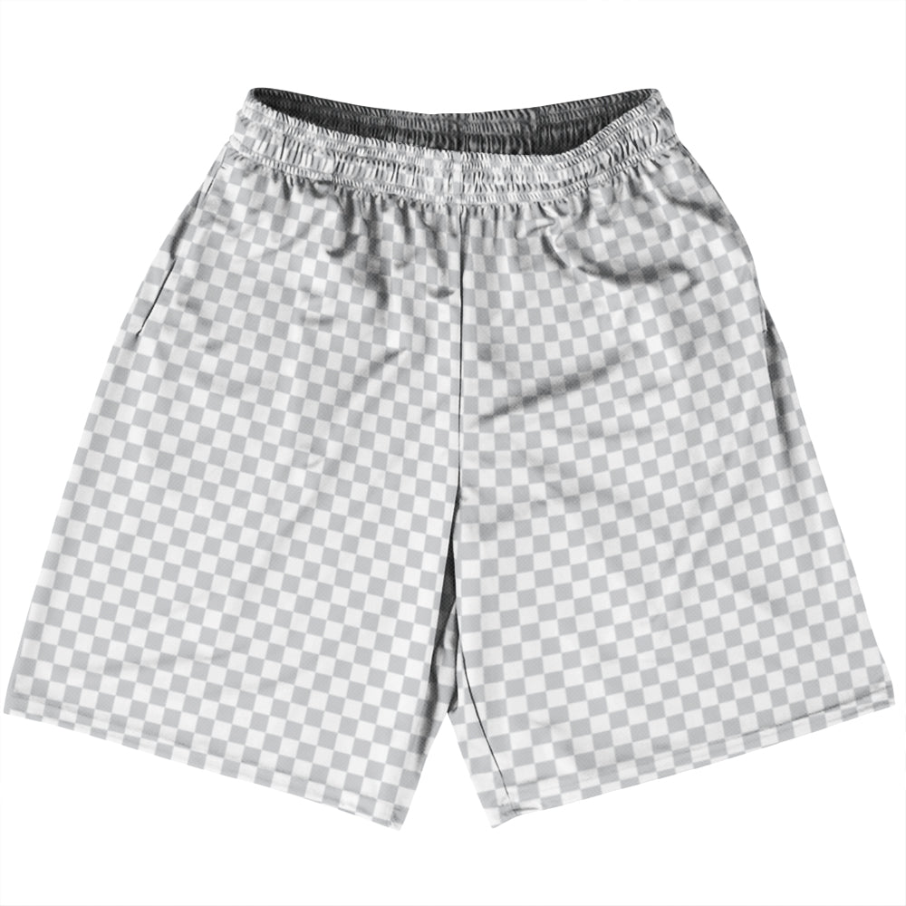 - Checkerboard Half Inch Grey Medium and White Basketball Practice Shorts Made In USA