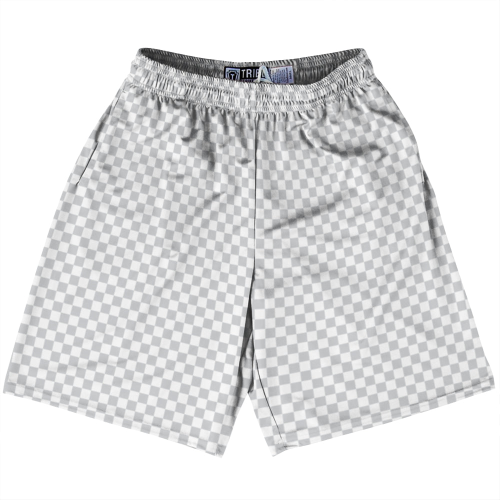 - Checkerboard Half Inch Grey Medium and White Lacrosse Shorts Made In USA