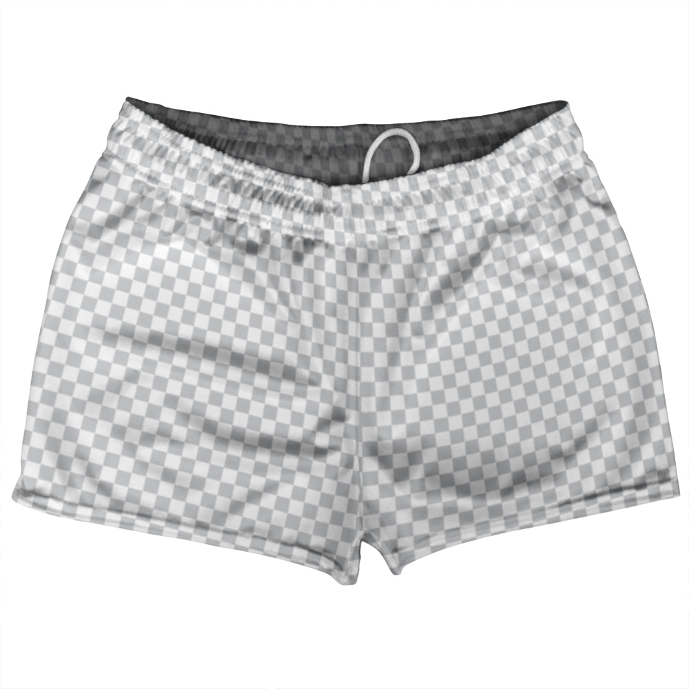 - Checkerboard Half Inch Grey Medium and White Shorty Short Gym Shorts 2.5" Inseam Made In USA