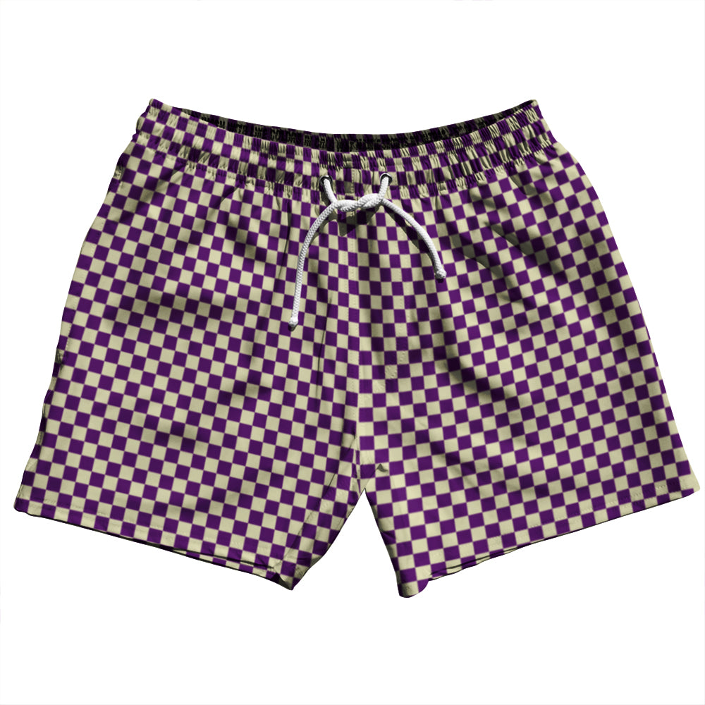 - Checkerboard Half Inch Purple Medium and Vegas Gold 5" Swim Shorts Made in USA
