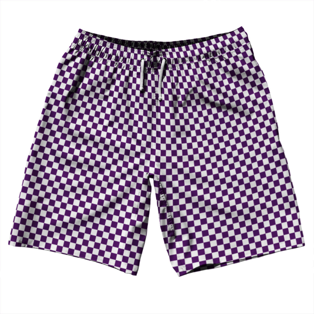 - Checkerboard Half Inch Purple Medium and White 10" Swim Shorts Made in USA