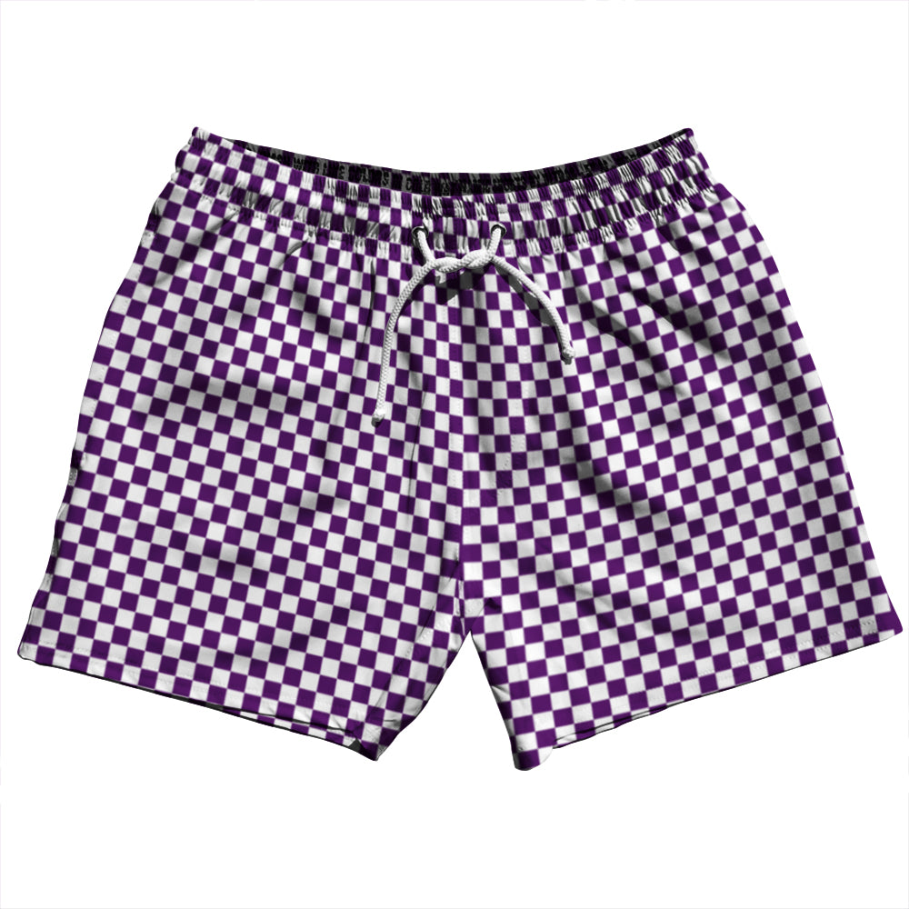 - Checkerboard Half Inch Purple Medium and White 5" Swim Shorts Made in USA